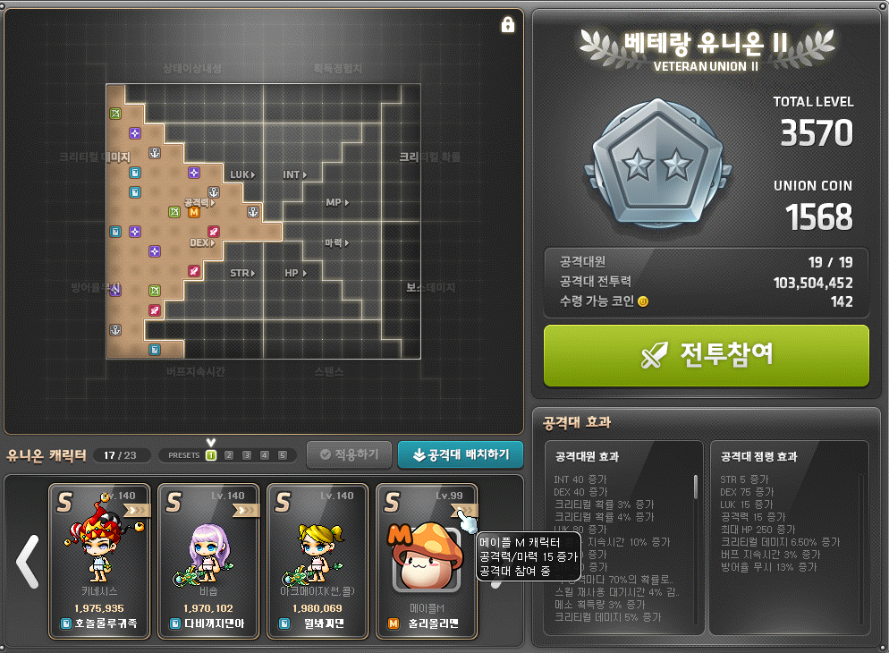 PC 메이플의 유니온 효과를