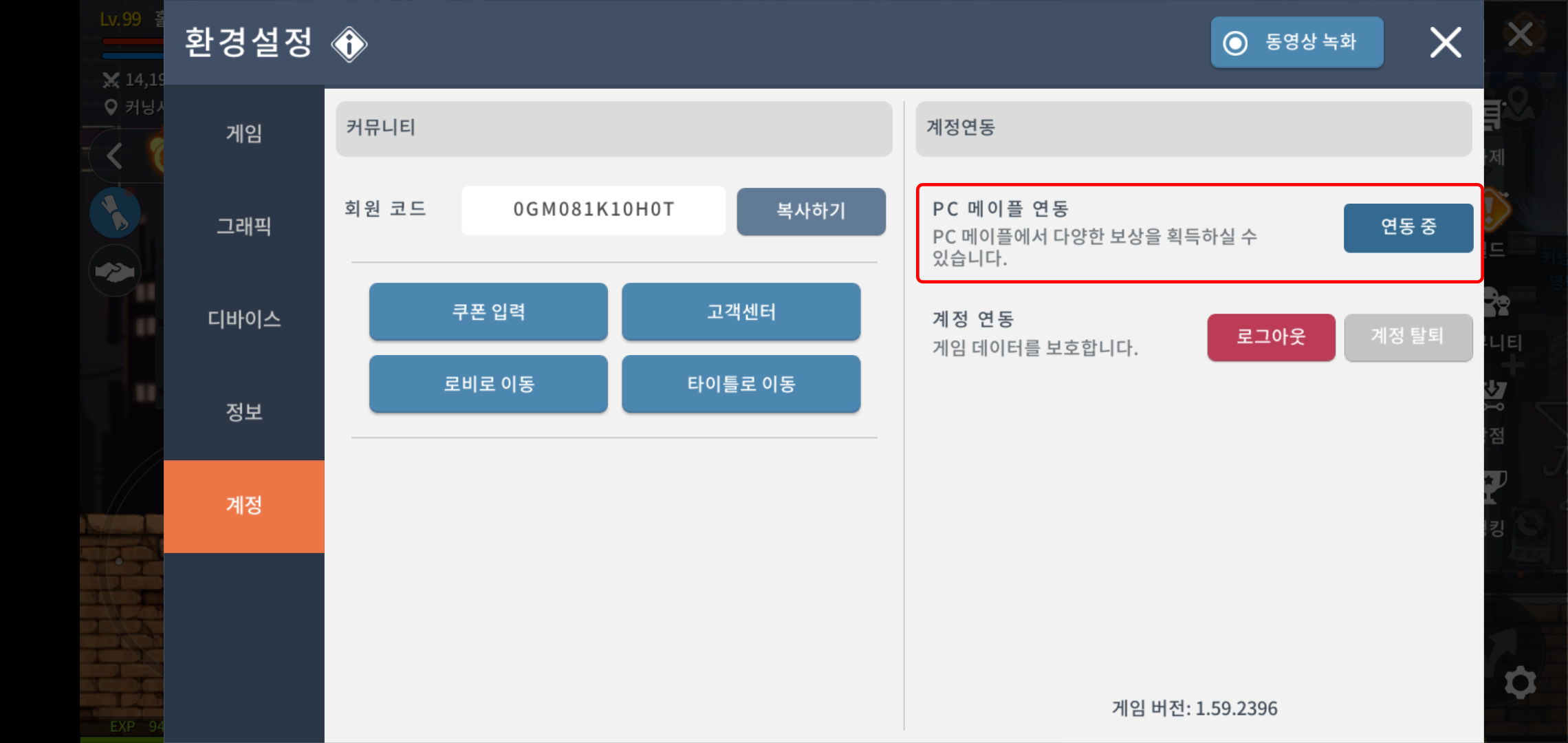 본인의 PC 메이플 계정과 연동하시면 됩니다.